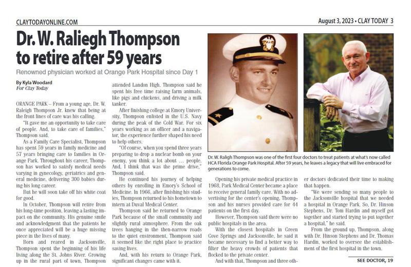 Clay Today • 3rd August 2023 Dr. W. Raleigh Thompson to retire after 59 years 5 Sources | Word Count: 1241