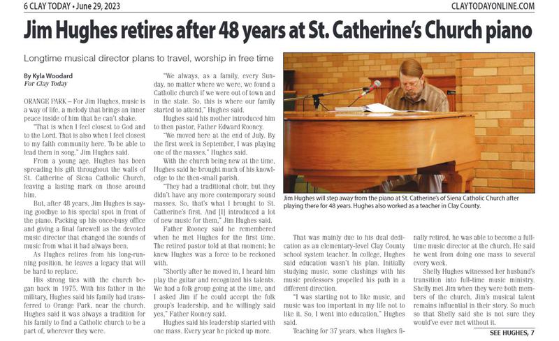 Clay Today • 29th June 2023 Jim Hughes retires after 48 years at St. Catherine's Church piano 5 Sources | Word Count: 1543
