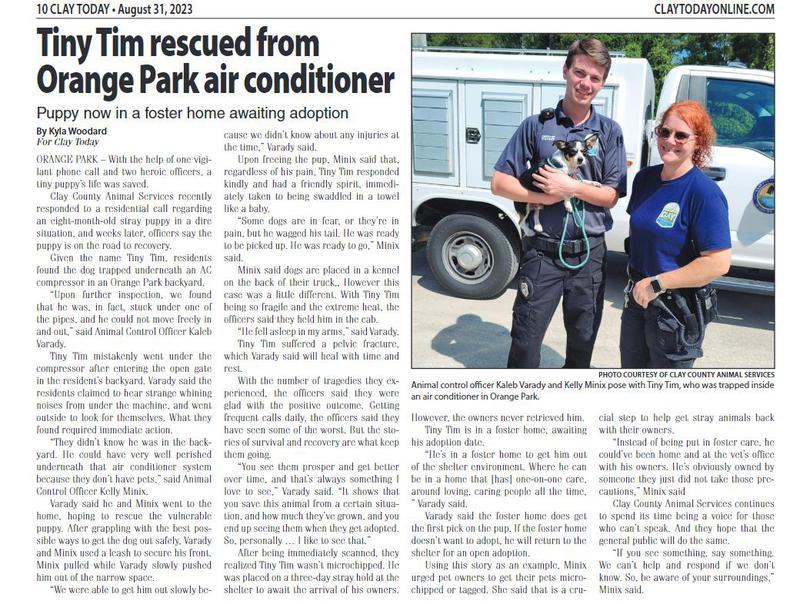 Clay Today • 31st August 2023 Tiny Tim rescued from Orange Park air conditioner 2 Sources | Word Count: 687
