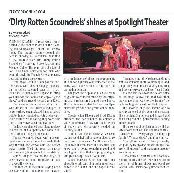 Clay Today • 8th June 2023 'Dirty Rotten Scoundrels' shines at Spotlight Theater 5 Sources | Word Count: 549