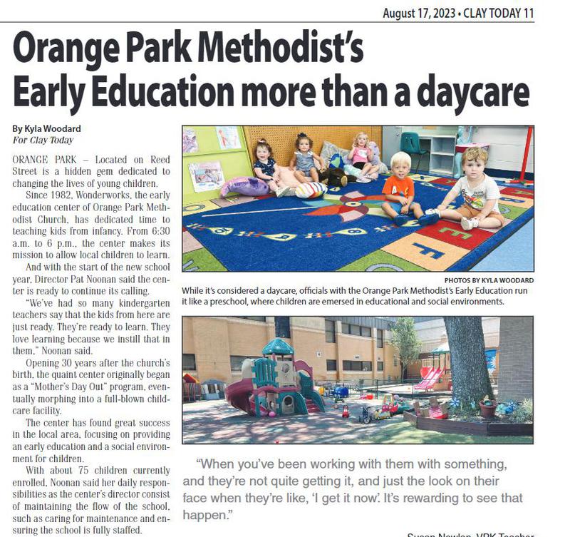 Clay Today • 17th August 2023 Orange Park Methodist's Early Education more than a daycare 3 Sources | Word Count: 850